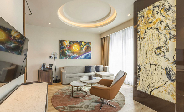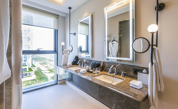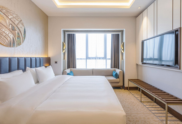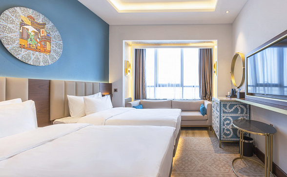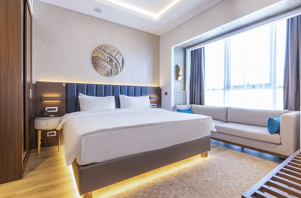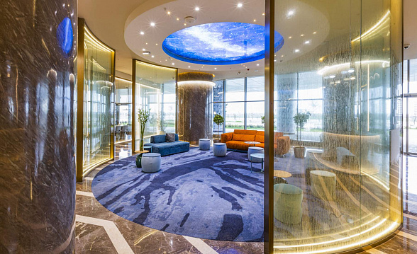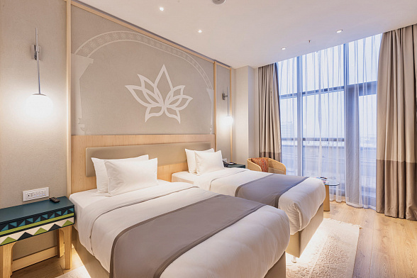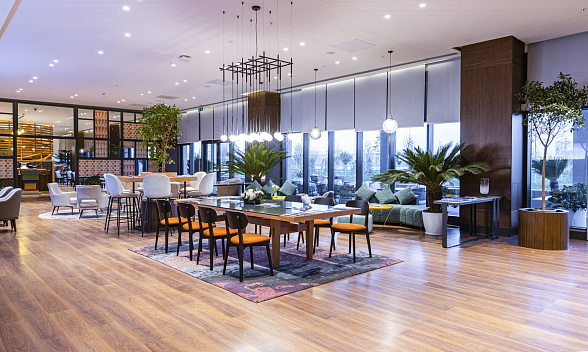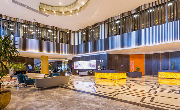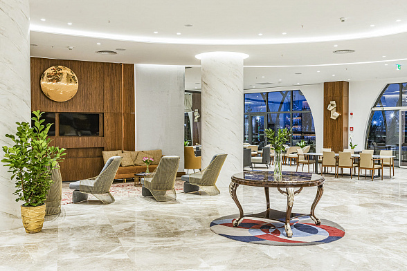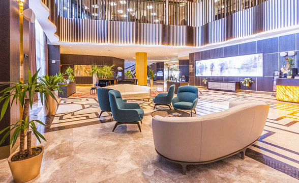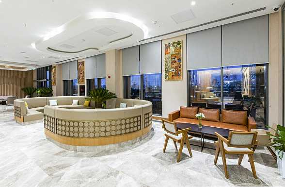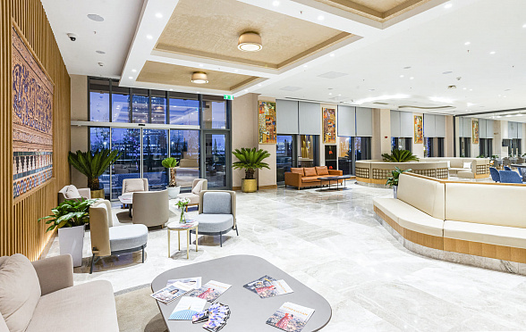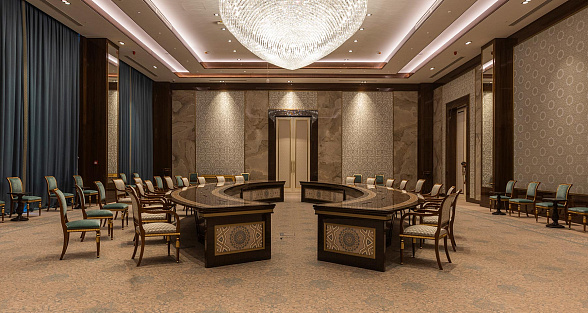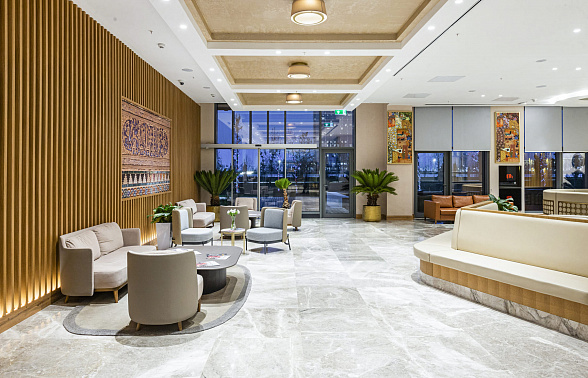 The Silk Road Samarkand touristic complex provides a spacious congress center with a total area of more than 28,000 m2. This is a building decorated in the oriental style with large panoramic windows. Its high-tech venue equipped with modern hardware is designed for hosting congresses, conferences, symposiums, exhibitions, presentations, shows, and banquets.