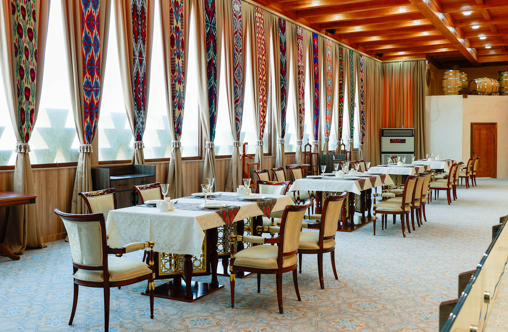 The cafe serves Fergana pilaf cooked by local chefs. Guests may be comfortably accommodated on one of three cozy terraces.
