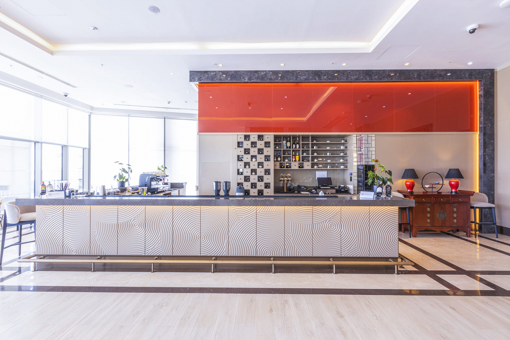 Enjoy craft cocktails and drinks from a unique collection. The lobby bar and lounge of the luxurious 5-star hotel exquisitely combines Asian atmosphere with stylish Chinese decor.
