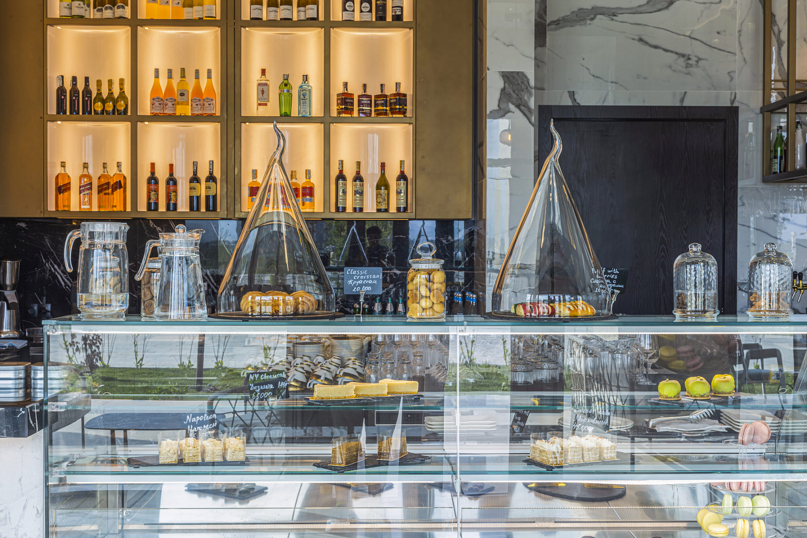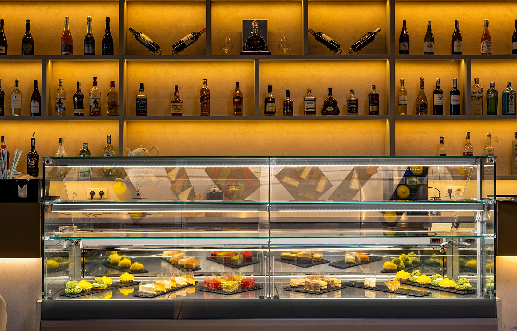 The menu offers a wide range of alcoholic drinks, premium tea, fresh juices, snacks, original salads, and desserts.