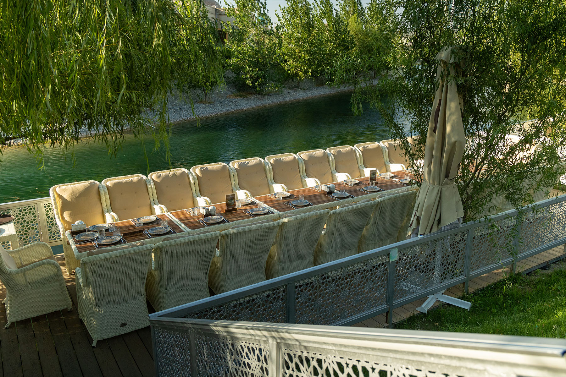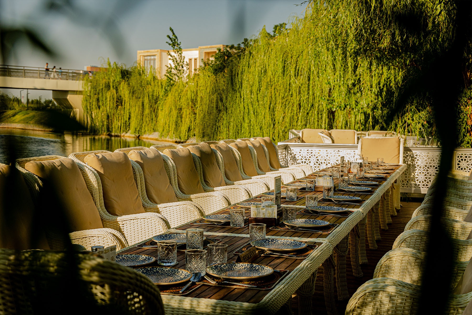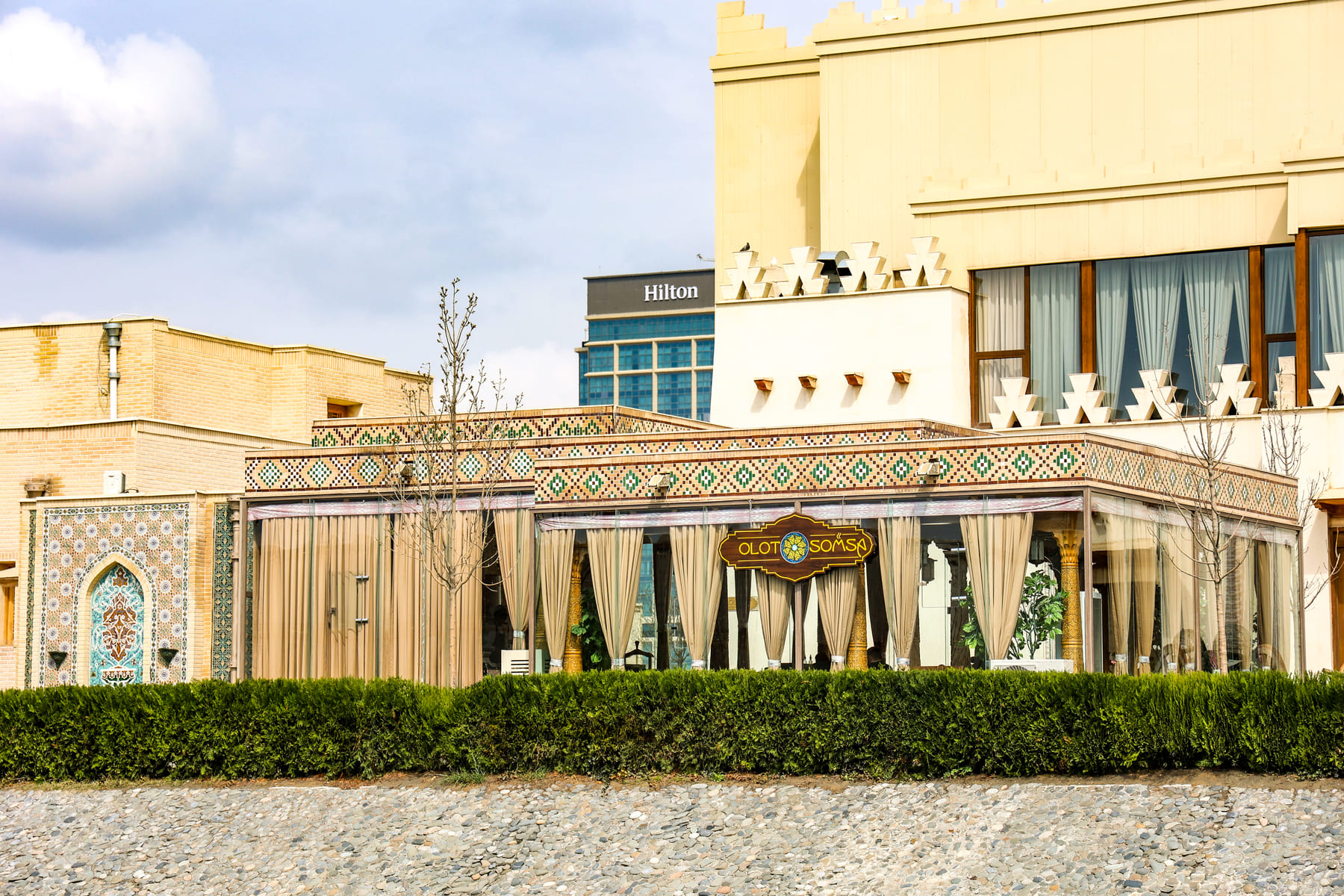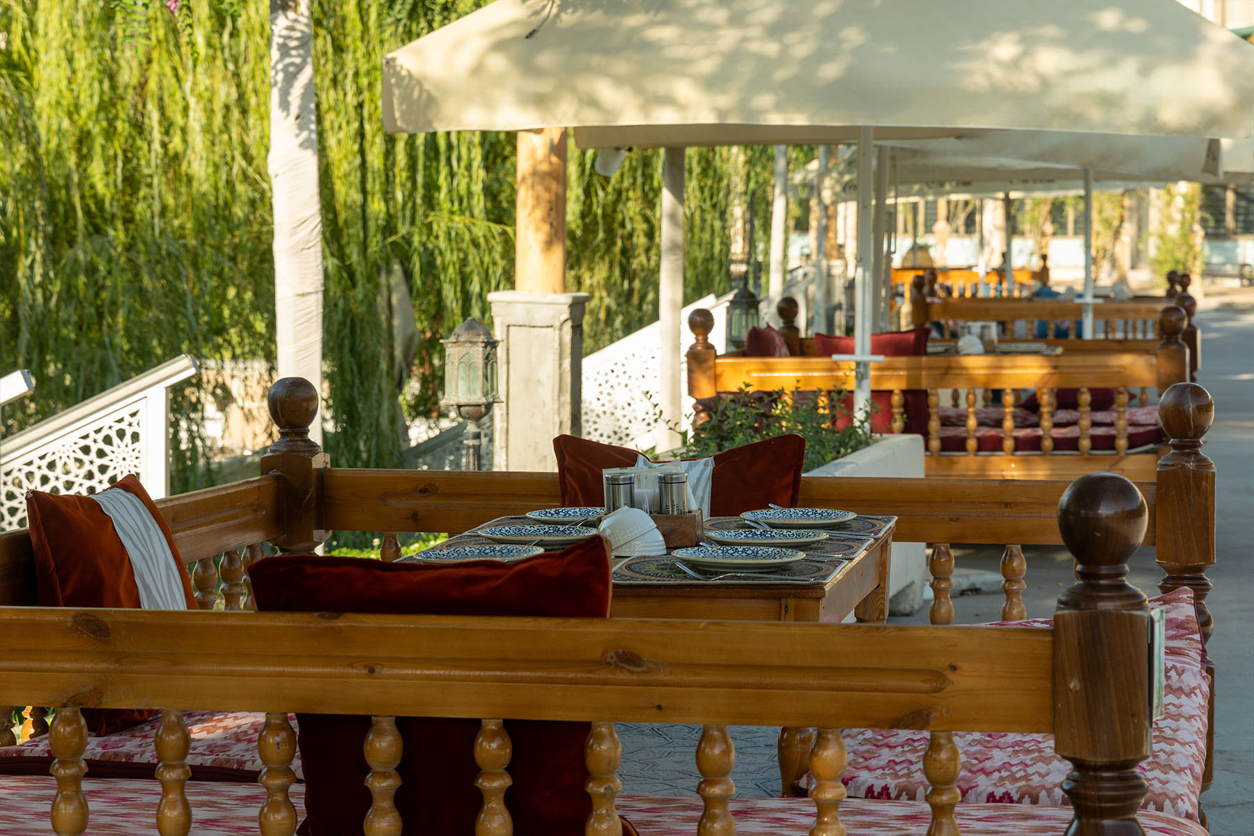 The restaurant accommodates up to 400 people and is suitable for hosting banquet events in the national Uzbek style. The menu focuses on Uzbek cuisine and traditional Eastern recipes. The dishes are prepared from local products, absorbing the bright sun and fresh air, to preserve the authenticity of flavors and cooking techniques.