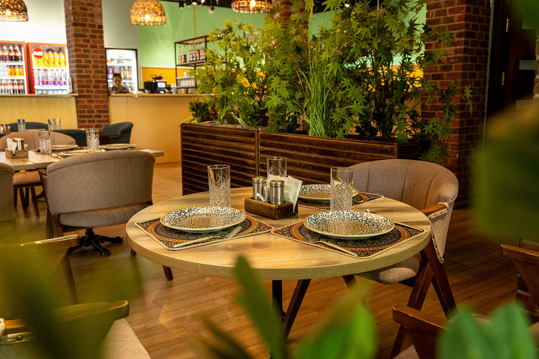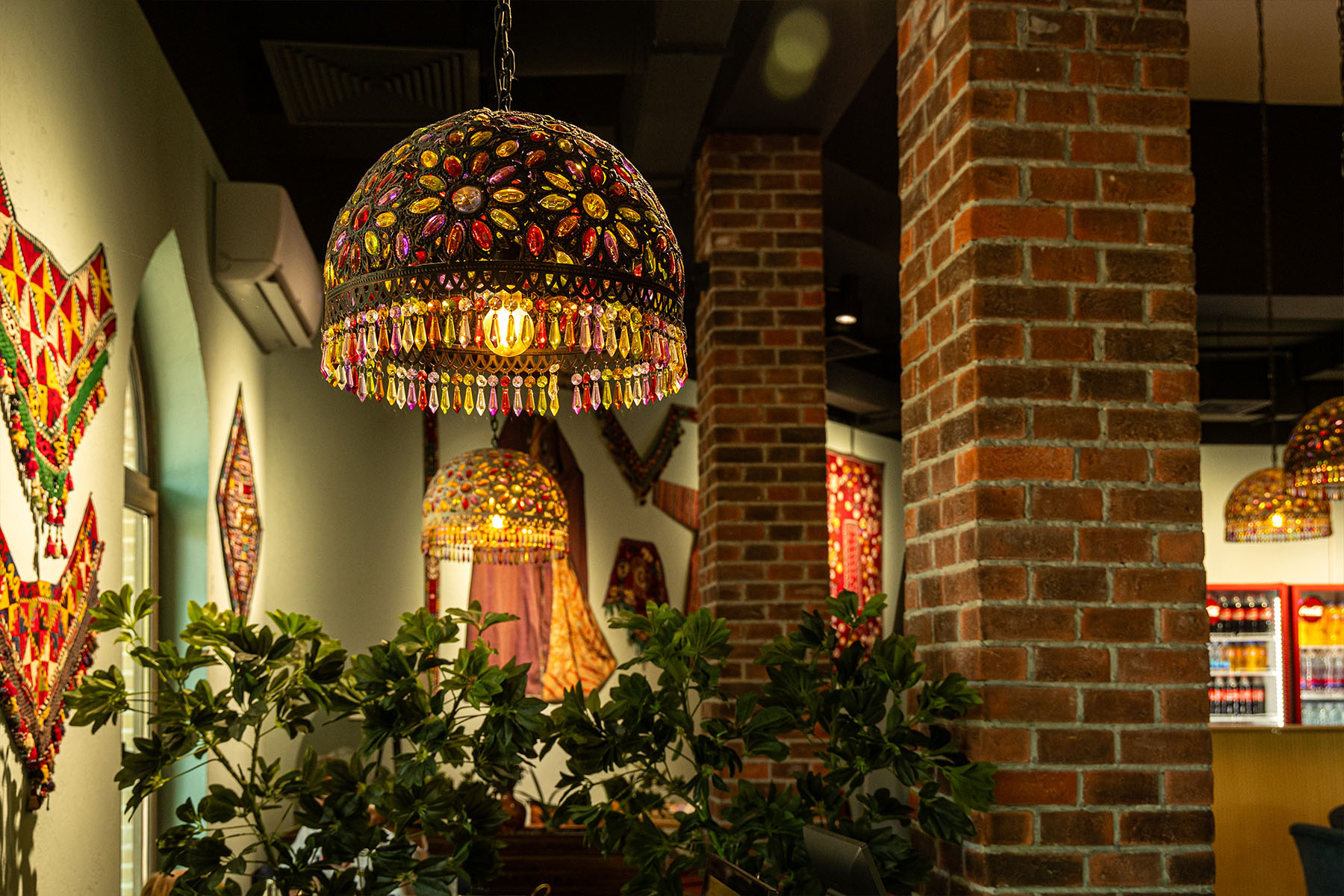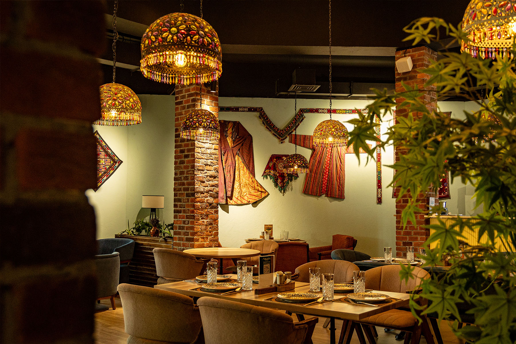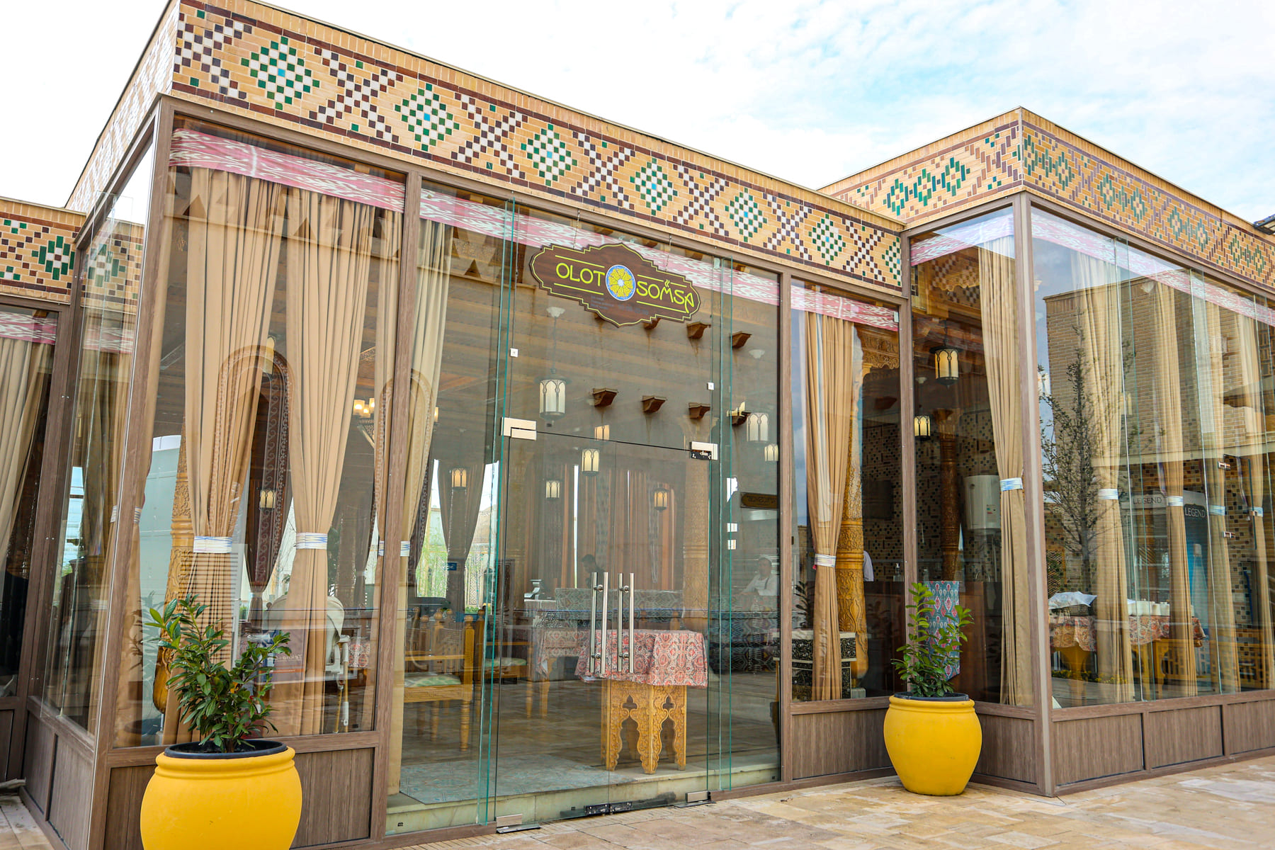 The pride of the restaurant is its magnificent design, created by the modern Uzbek artist Bobur Ismailov. Thanks to his work, modern motifs and traditional elements of Uzbek art are harmoniously combined, and the 8-meter columns add grandeur to this place, truly breathtaking!