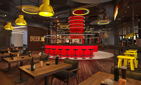 Majmua hududida o‘zbek va xalqaro taomlarni tatib ko‘rishingiz mumkin bo‘lgan turli xil restoranlar mavjud.