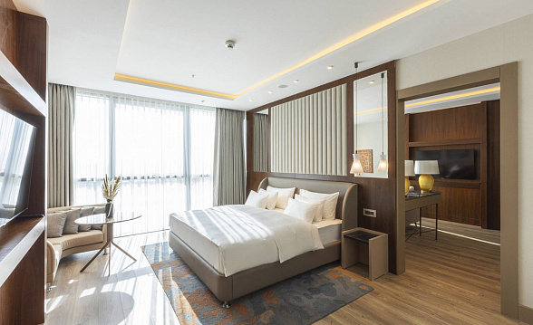 The Silk Road Samarkand touristic complex provides a spacious congress center with a total area of more than 28,000 m2. This is a building decorated in the oriental style with large panoramic windows. Its high-tech venue equipped with modern hardware is designed for hosting congresses, conferences, symposiums, exhibitions, presentations, shows, and banquets.