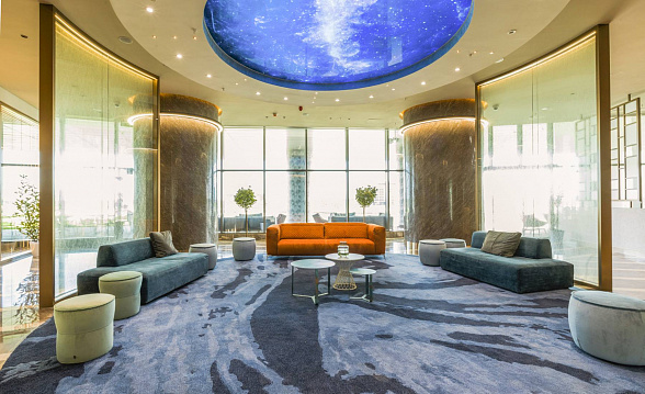 مركز المؤتمرات الفسيح الذي تبلغ مساحته الإجمالية 28 ألف متر مربع هو مبنى على الطراز الشرقي ذو نوافذ بانورامية كبيرة على كامل محيطه. وقد جُهز مركز المؤتمرات عالي التقنية بمعدات حديثة وهو مخصص لإقامة المؤتمرات والاجتماعات والندوات والمعارض والعروض التقديمية والعروض والمآدب.