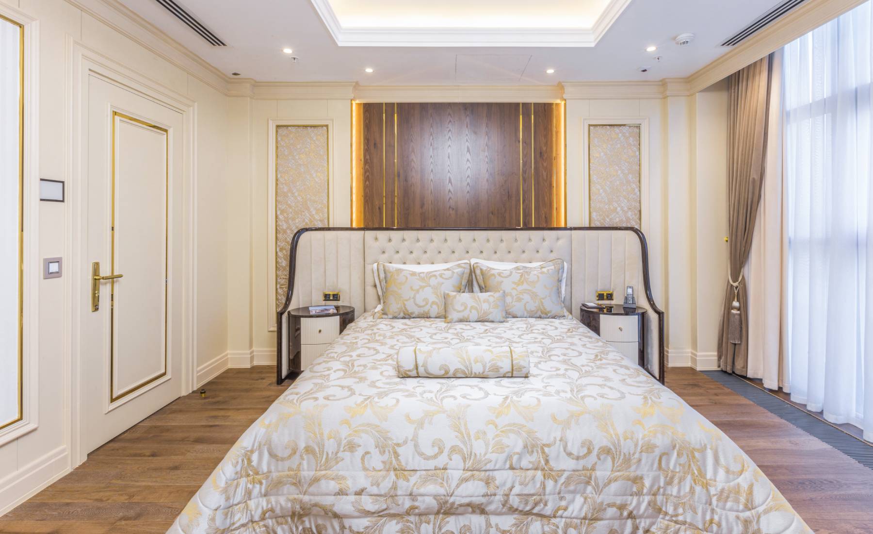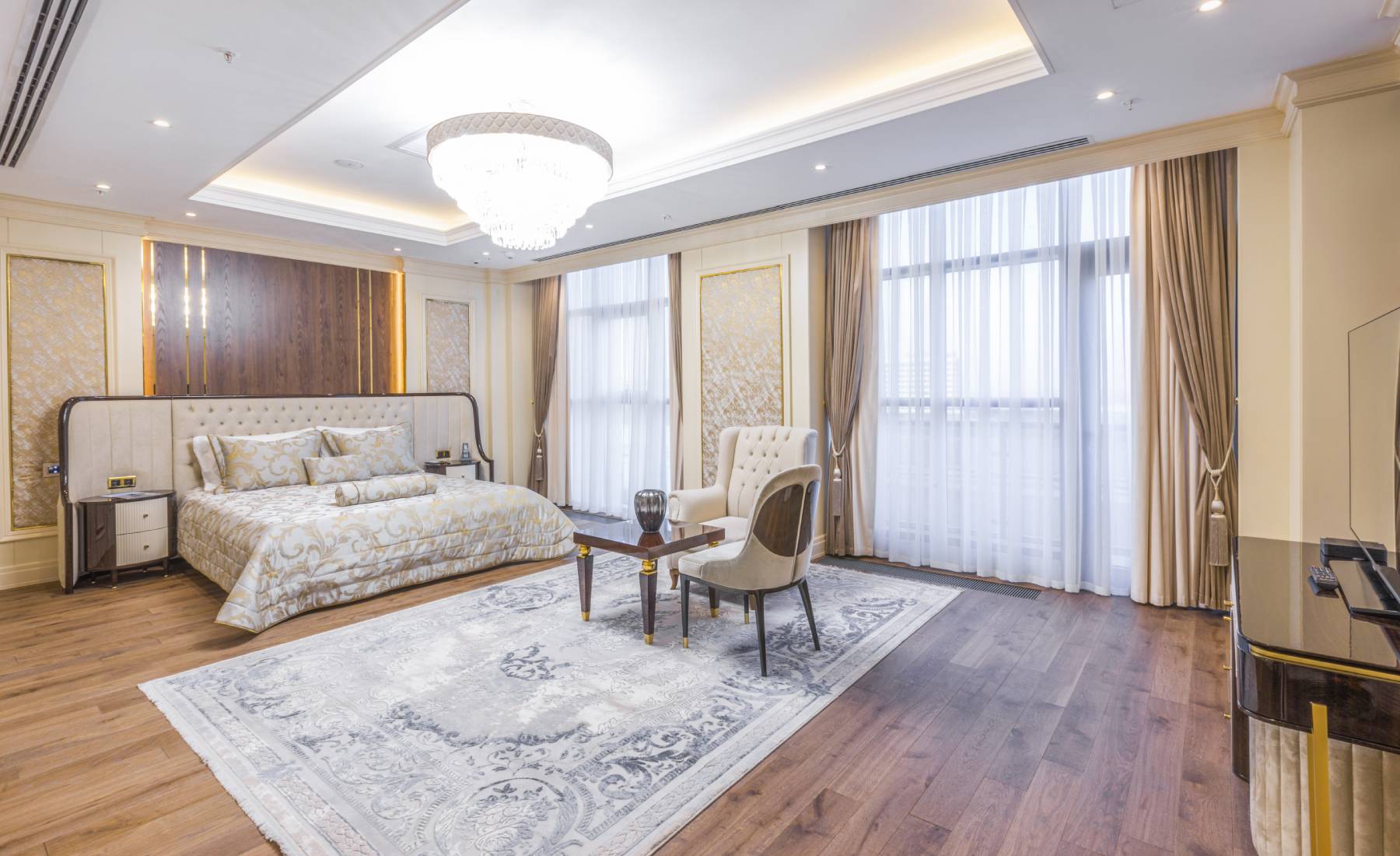 غرفة لغير المدخنين. من بين وسائل الراحة: غرفة ضيوف وغرفة طعام وحمام إضافي وأريكة ومكيف هواء وتلفزيون بشاشة مسطحة بقياس 55 بوصة وبار صغير وخزنة ومرافق لكي الملابس وآلة تحضير الشاي ومايكرويف وثلاجة صغيرة وآلة لتحضير القهوة وهاتف وقنوات تلفزة فضائية ورداء حمام ونعل ومجموعة من مستحضرات الاستحمام ومجفف شعر
