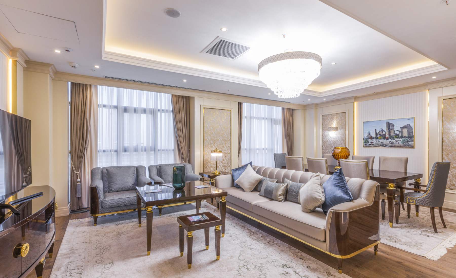 غرفة لغير المدخنين. من بين وسائل الراحة: غرفة ضيوف وسريرين وحمام إضافي وأريكة ومكيف هواء وتلفزيون بشاشة مسطحة بقياس 55 بوصة وبار صغير وخزنة ومرافق لكي الملابس وآلة تحضير الشاي ومايكرويف وثلاجة صغيرة وآلة لتحضير القهوة وهاتف وقنوات تلفزة فضائية ورداء حمام ونعل ومجموعة من مستحضرات الاستحمام ومجفف شعر