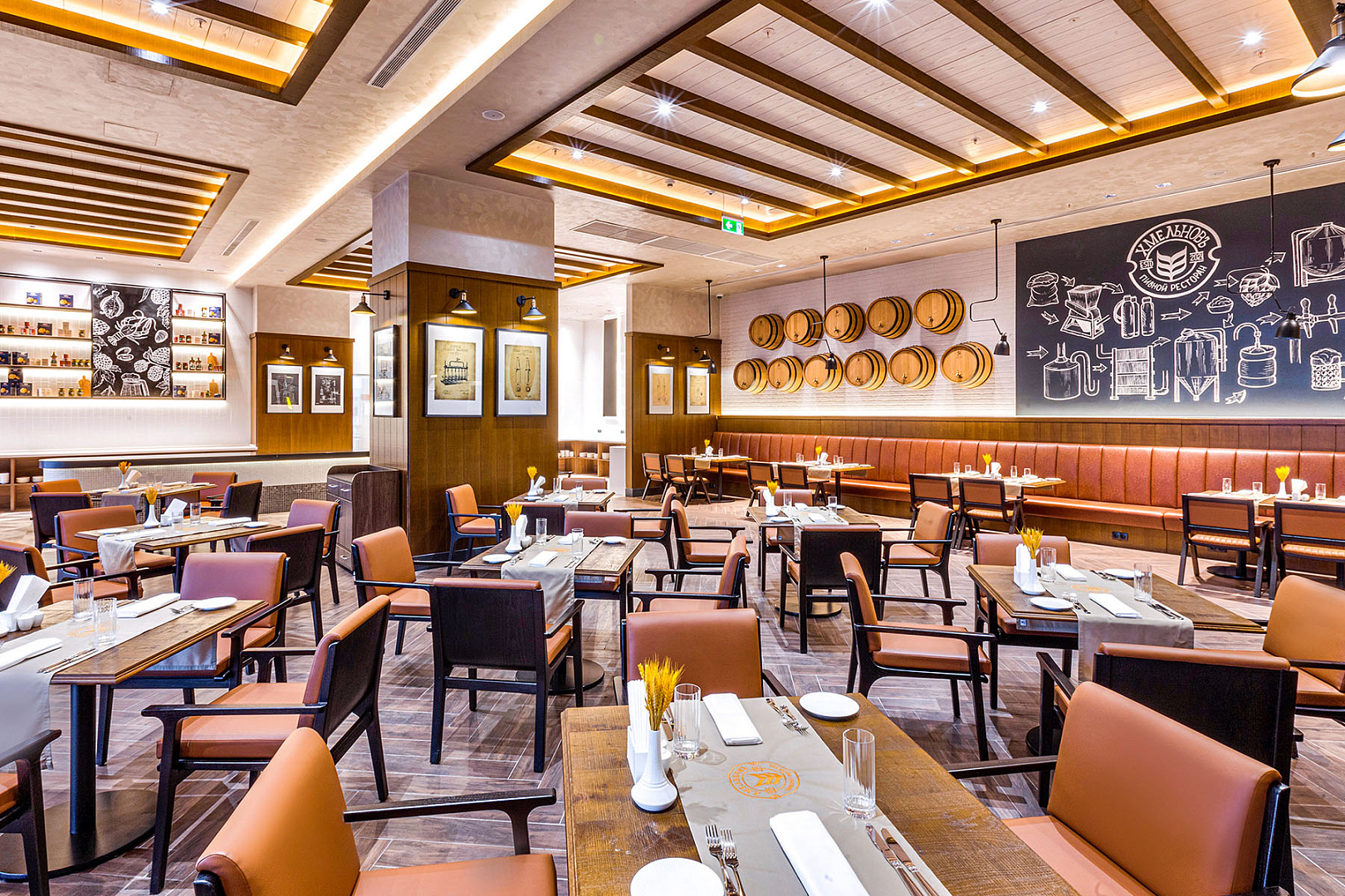 «ХмельновЪ» — ресторан-бар с собственной пивоварней, который работает в формате паба. В меню представлены блюда, характерные для традиционно «пивных» стран: Германии, Австрии, Ирландии и Чехии.