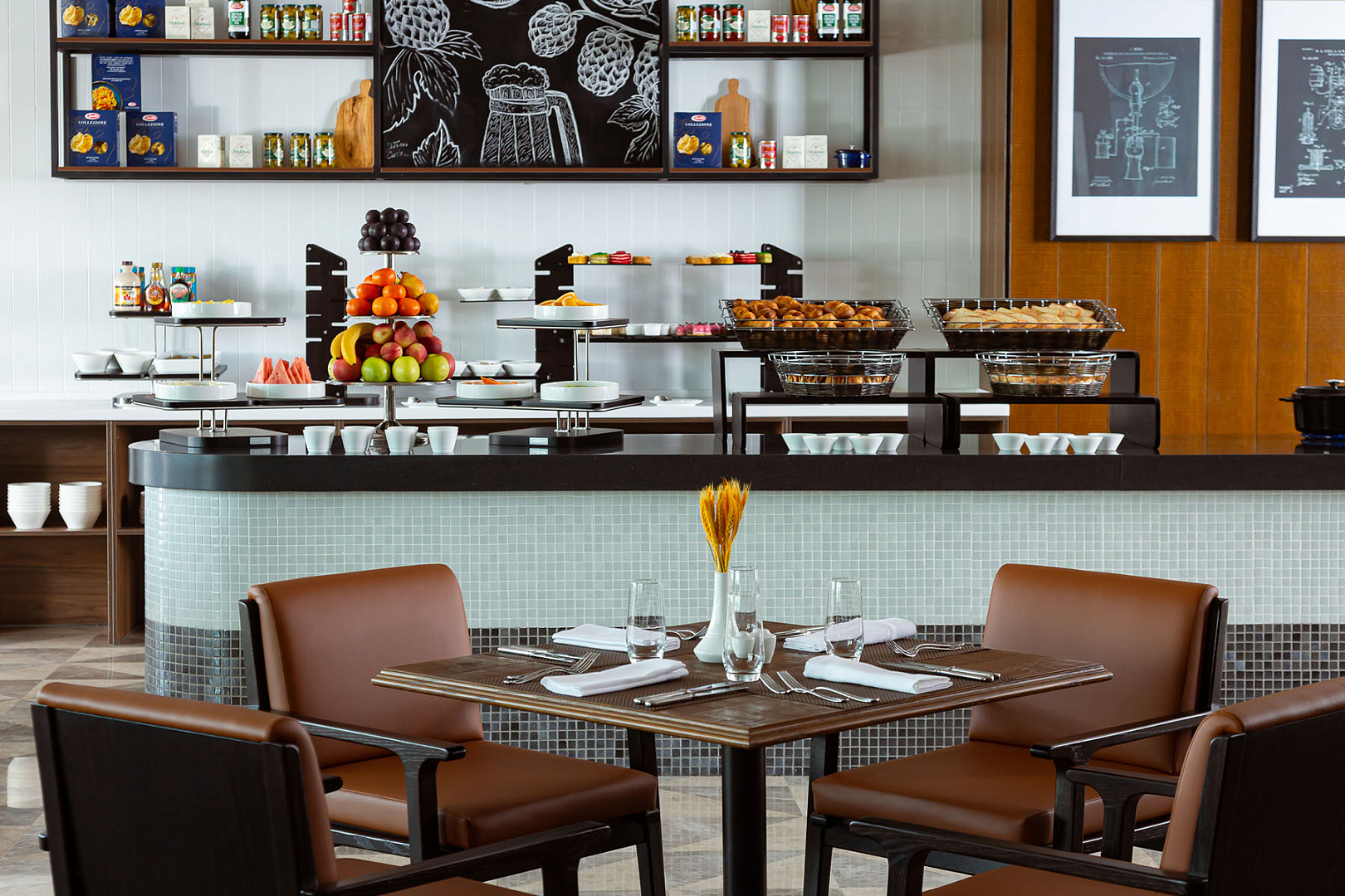 Уютный ресторан для завтраков, в котором действует система шведский стол и заказы по А ля карт меню.