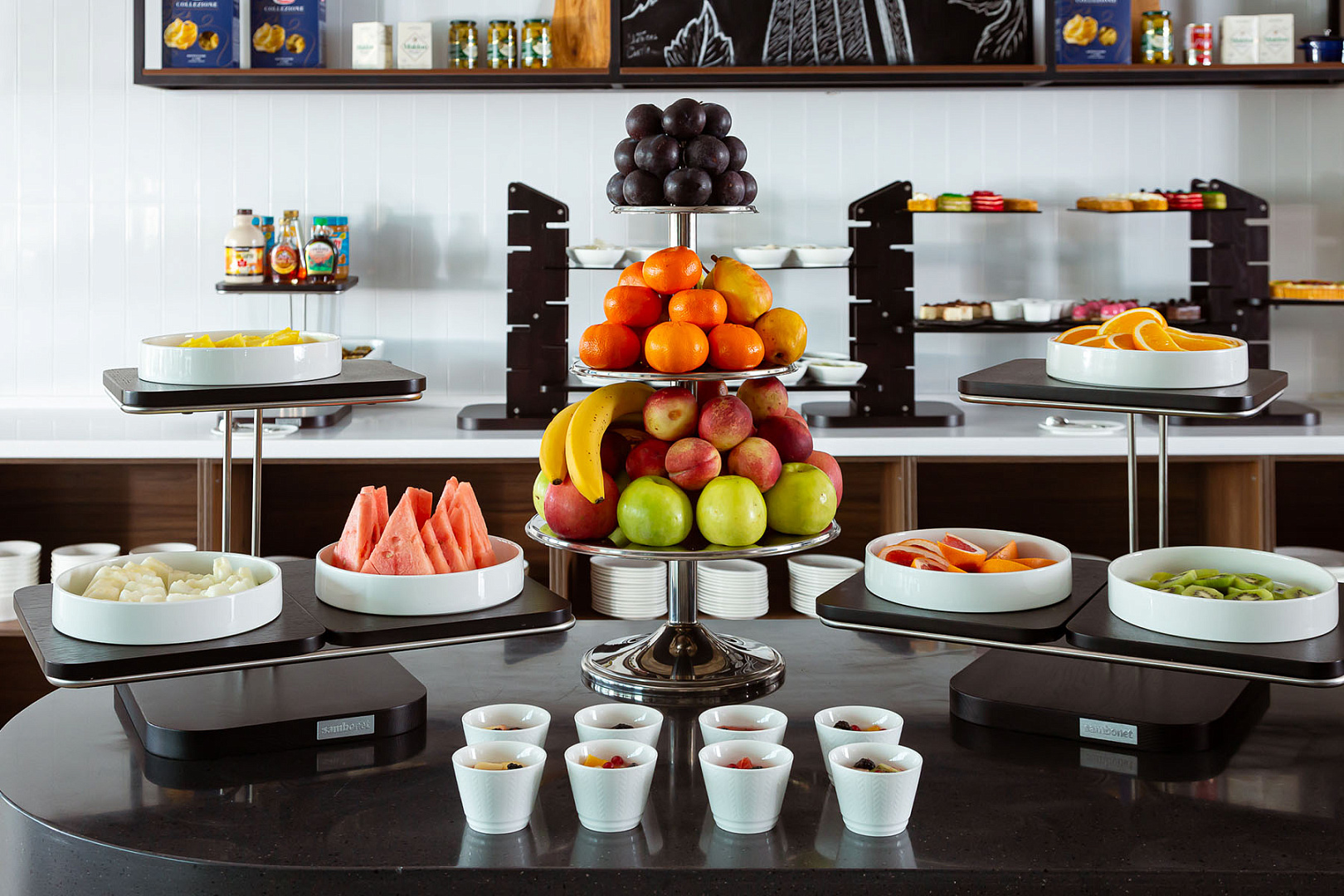 На шведском столе гостей ждет большой выбор вкусной и полезной еды, а также вегетарианские и постные блюда.
