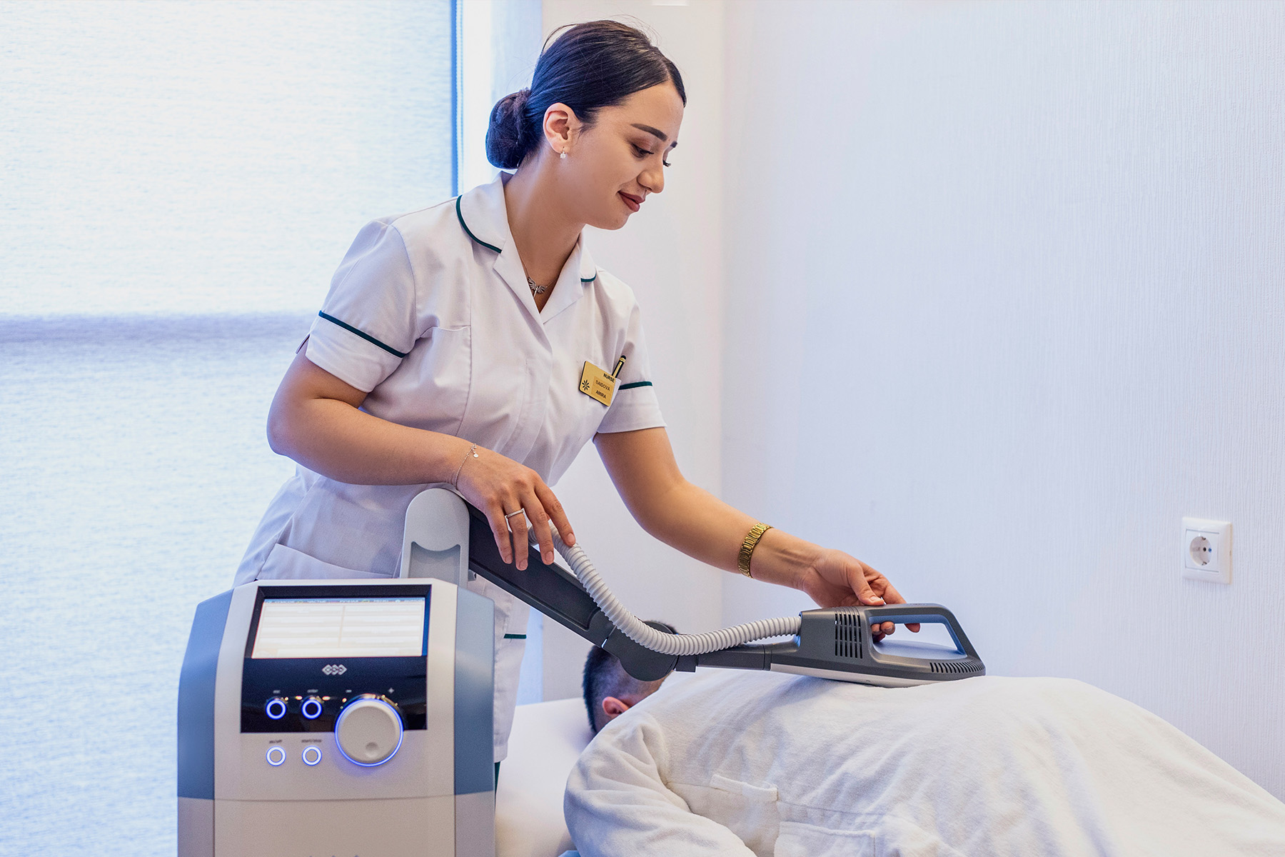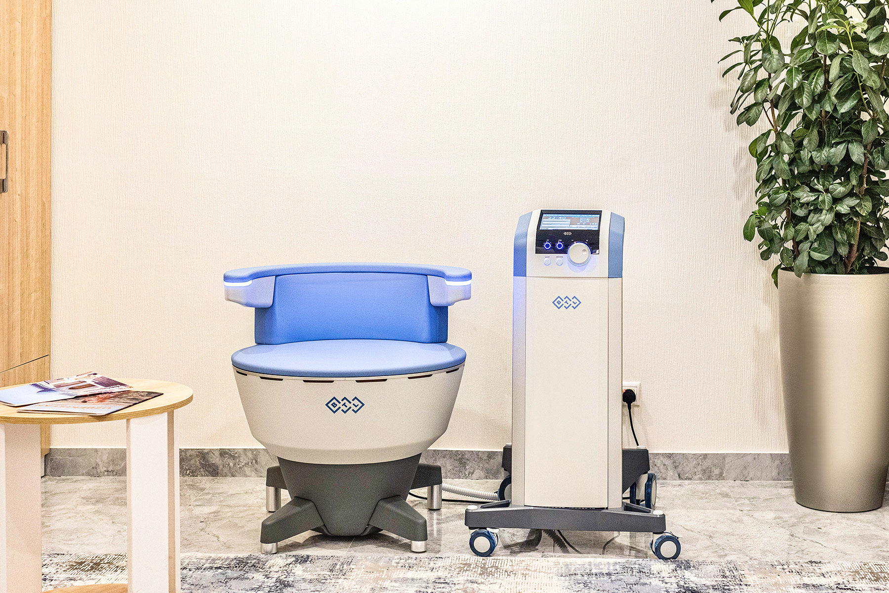 Yuqori intensivlikdagi magnitoterapiya (20 daqiqa): magnit maydoni yordamida davolash. Yallig‘lanishni kamaytirishga va tayanch-harakat tizimidagi og‘riqlarni bartaraf etishga yordam beradi.